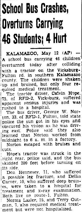 The following article appeared in the May 12, 1954 edition of The Herald-Press newspaper, St. Joseph, Michigan: