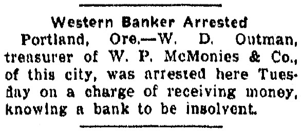 | The article below was published in a 1910 edition of the "Grand Rapids Tribune" newspaper from Grand Rapids, Wisconsin. (In 1920 this city changed it's name to Wisconsin Rapids.) I don't know why this item from Oregon would appear in a Wisconsin newspaper. I tried searching Portland, Oregon newspapers for any mention of this, but was unsuccessful in locating any. |